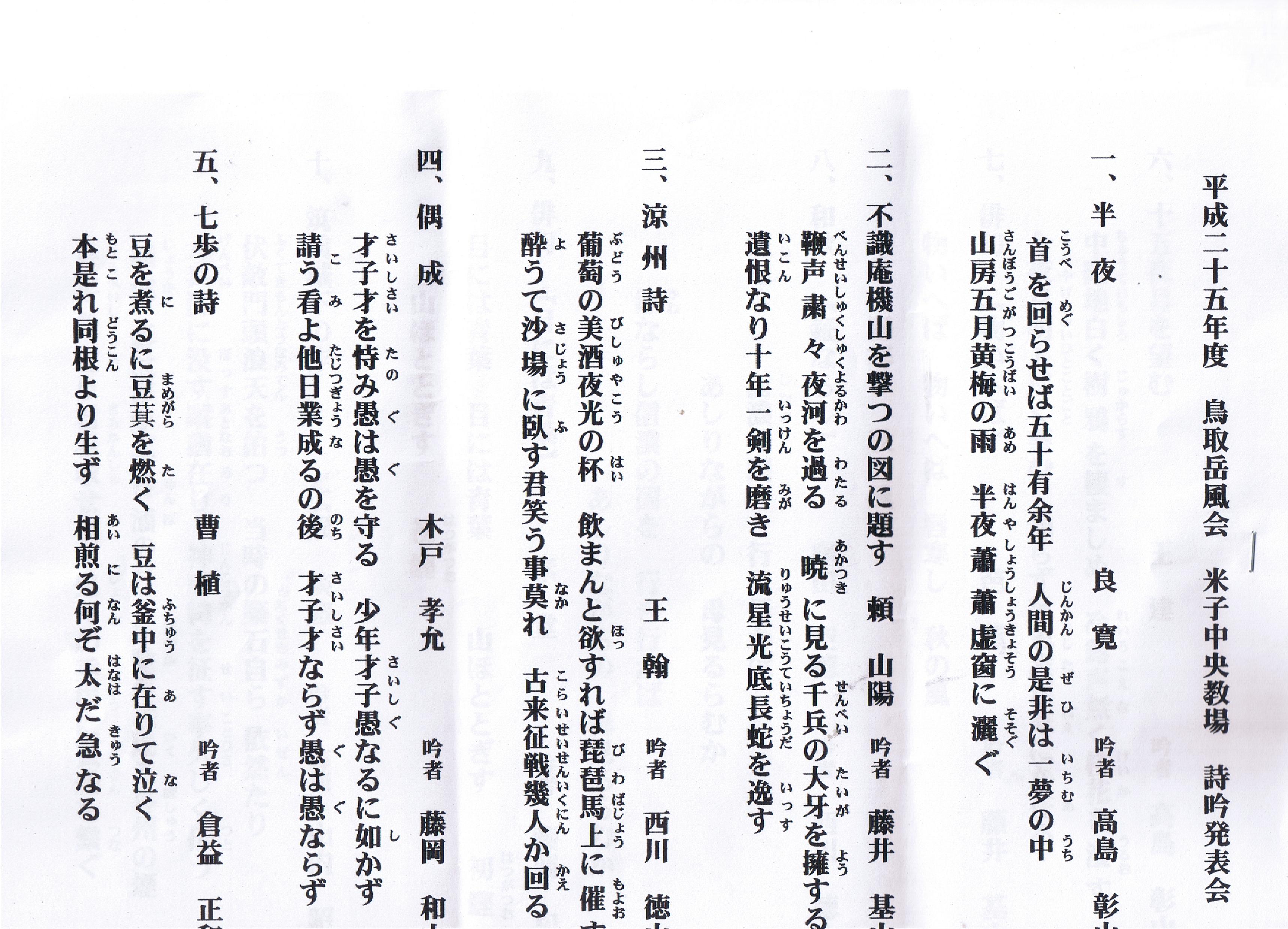 詩吟に興味があるお近くの人は、ぜひ教場に遊びにいらして下さい。