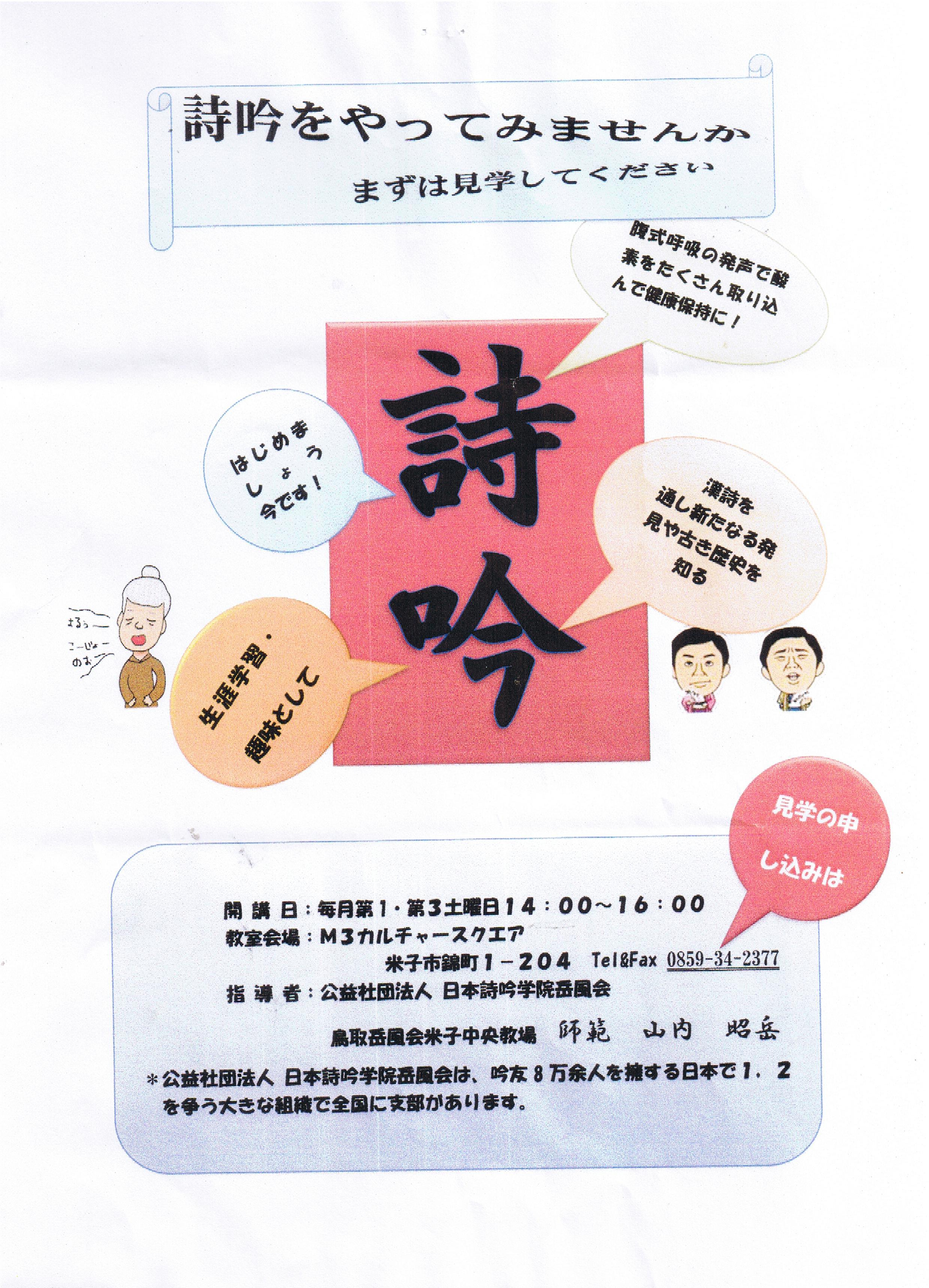 見学会にもなっていますので、「詩吟」に興味ある人は、この機会にぜひお越しください。